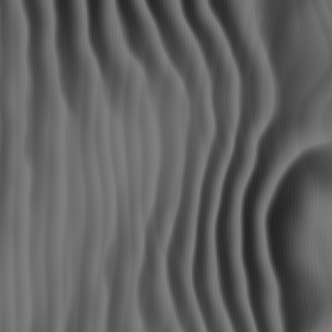 Finally, to create an actual desert scene, we are going to combine several layers of dunes with different settings for each layer. I’m still experimenting with the best way to combine each set of dunes. For now I settled on using simplex noise as a weight for each layer and simply adding all the layers together. The final result looks like this.